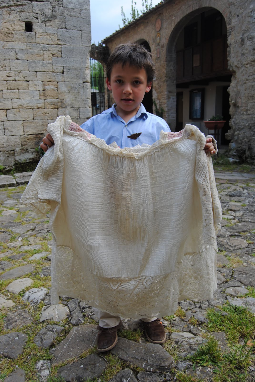 Vicar General of His Holiness, card. Pompilj, during the ceremony of blessing of the cornerstone for the Minor Seminary in Rome. There is no need to present the bent lad. In the photo everyone is dressed in albs and surplices called, from Italian, griccia, which were characterised by a peculiar pattern created by ironing the fabric in a special way.
